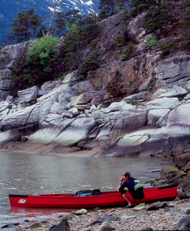 This is the Ally 515 canoe we paddled, portaged and lined up river on the 2007 leg of our expedition. Made in Norway, it measures 16’ long, 33” wide and weighs 39-pounds. The skin-on-frame design disassembles like a tent and can be carried in a backpack. |